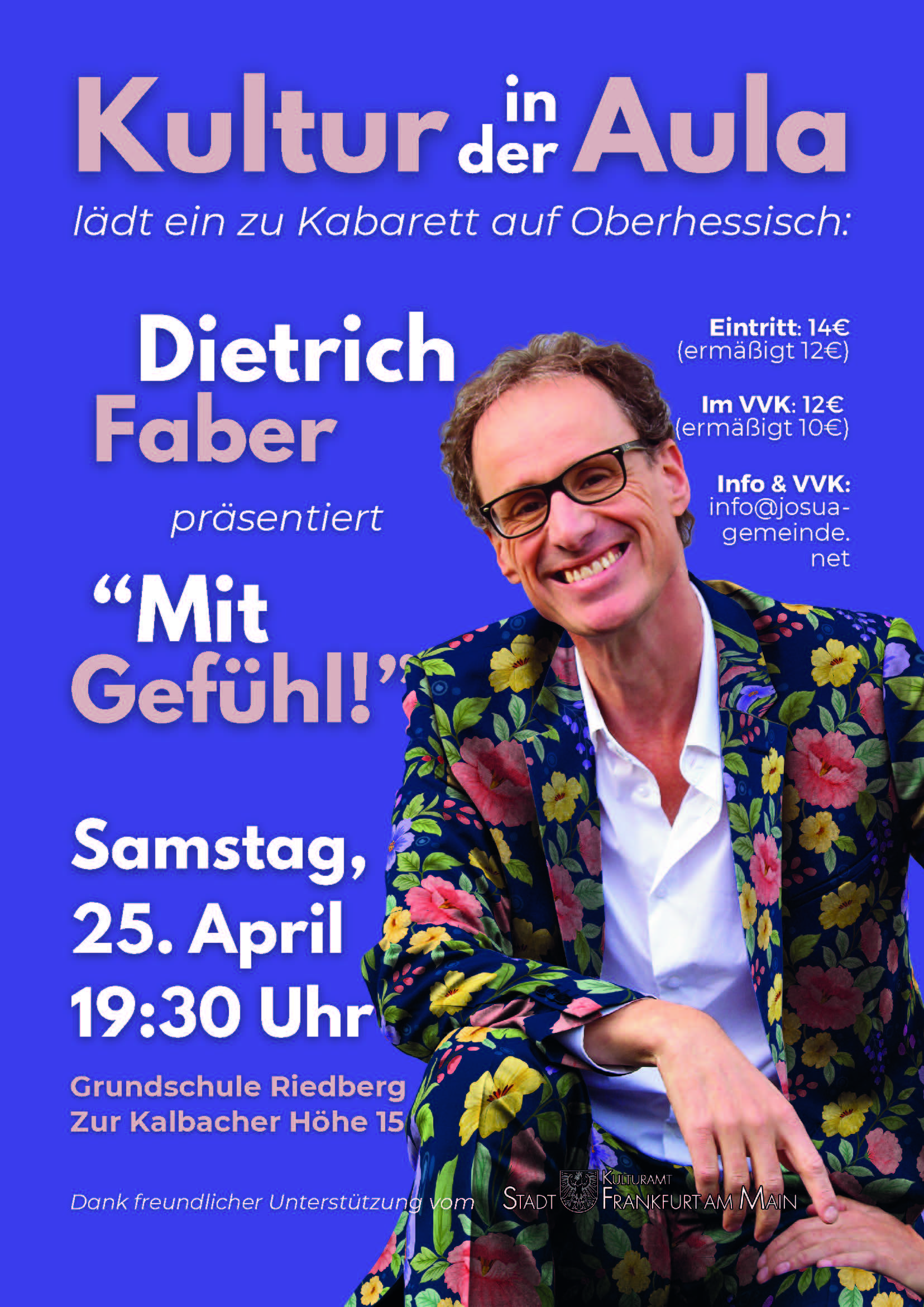 In seiner neuen Bühnenshow zeigt der Gießener Bestsellerautor, Kabarettist, Schauspieler und Musiker Dietrich Faber wieder alles, was seine Bühnenkunst seit Jahren ausmacht: mitreißendes, facettenreiches, witziges, tiefsinniges, musikalisches, ja…gefühlvolles Entertainment.